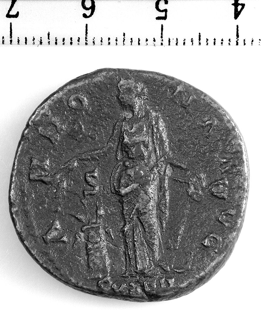 D/ Testa laureata di Antonino Pio volta a d. R/ L'Annona stante di frontee volta a s. con due spighe e ancora; ai suoi piedi, a s., modio con spighe e papaveri