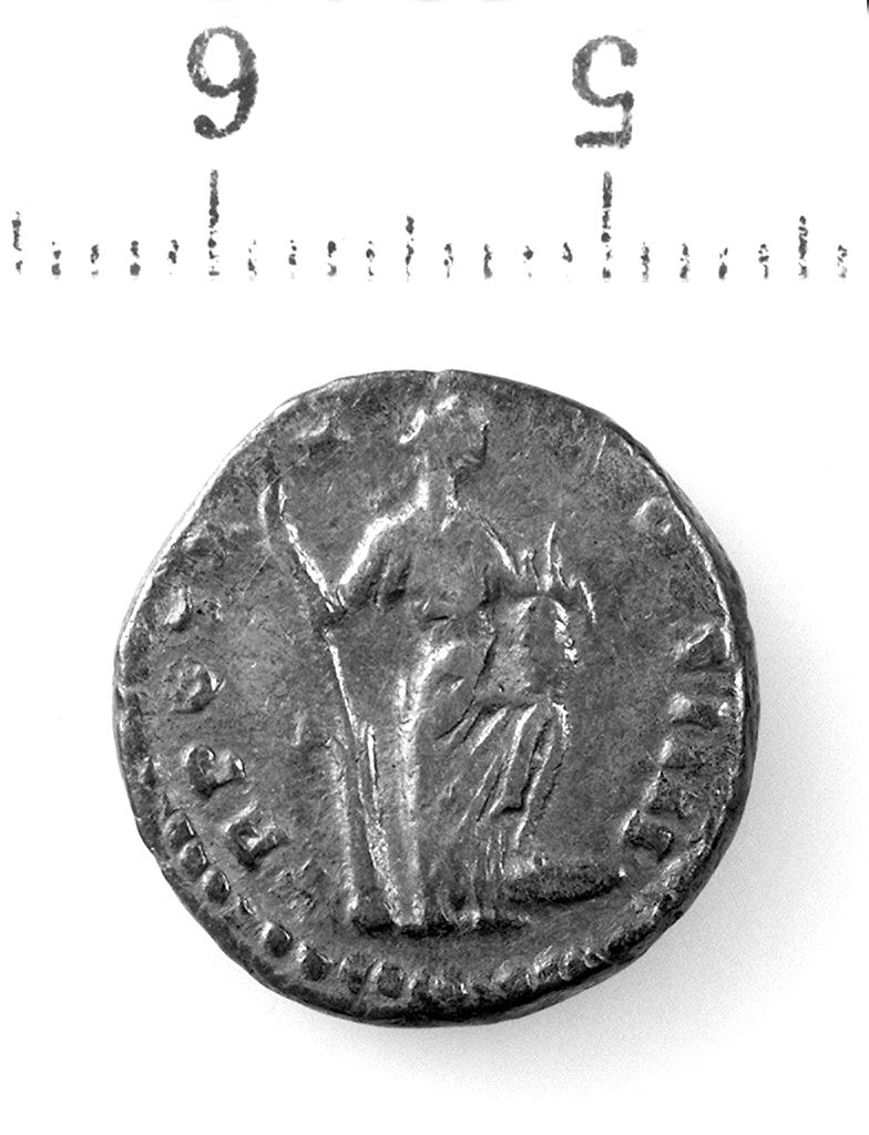 D/ Testa laureata di Antonino Pio volta a d. R/ L'Annona stante di frontee volta a s., con la mano d. tiene il timone; piede s. su prua di nave; sul ginocchio s. modio con spighe