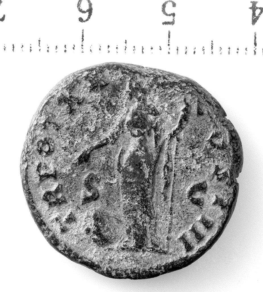 D/ Testa laureata di Antonino Pio volta a d. R/ La Providentia stante di fronte e volta a s. con scettro nella d., in atto di indicare un grande globo posto ai suoi piedi