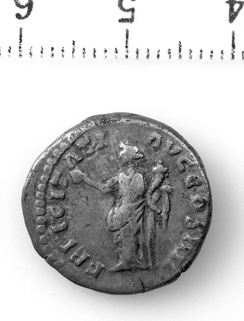 D/ Testa laureata di Antonino Pio volta a d. R/ La Felicitas stante di fronte e volta a s., con globo e cornucopia