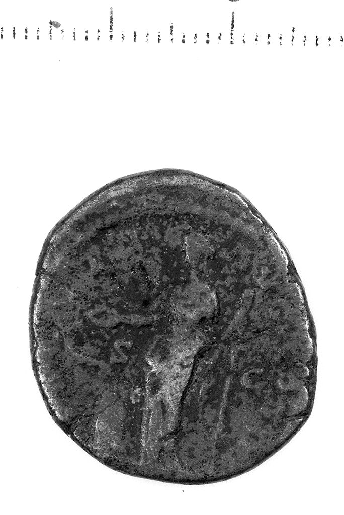 D/ Testa radiata di M. Aurelio, volta a d.R/ La Salus stante di fronte e volta a s., con scettro nella s., nell'atto di nutrire con la patera il serpe che si svolge dall'ara