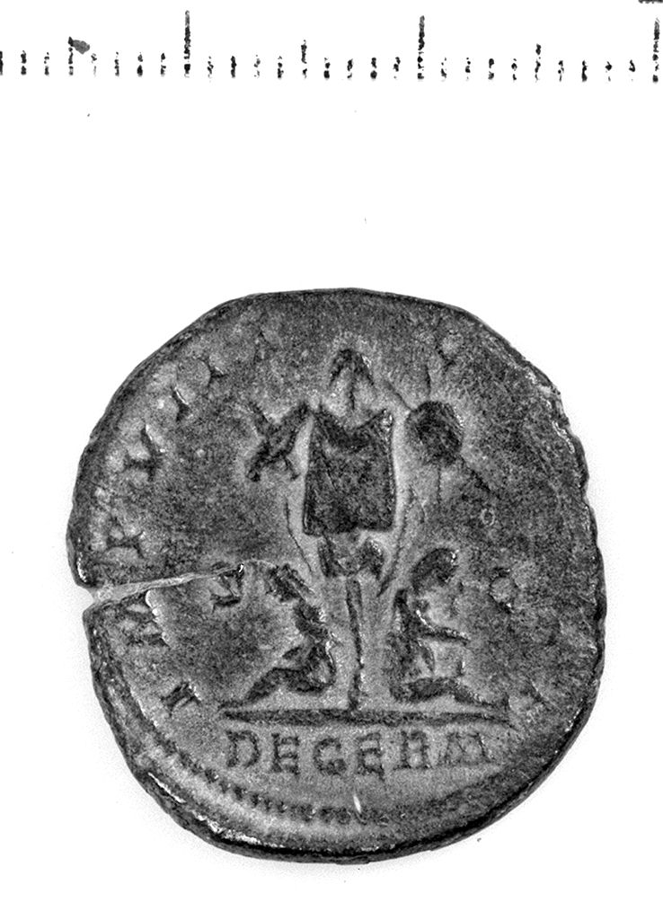 D/ Busto di M. Aurelio radiato e drappeggiato a d.. R/ Trofeo d'armi antropomorfo, alla base due prigionieri