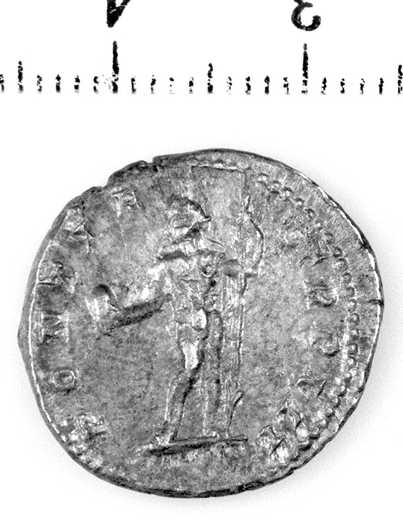 D/ Busto giovanile di Caracalla, laureato e drappeggiato, volto a d.. R/ Il Sole stante di fronte e volto a s. con il globo e la lancia rovesciata