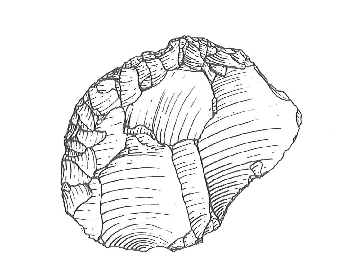 Raschiatoio su scheggia molto piatta di colore crema. Il ritocco, laterale sinistro, è piatto invadente diretto. Il tallone è faccettato a "chapeau de gendarme"