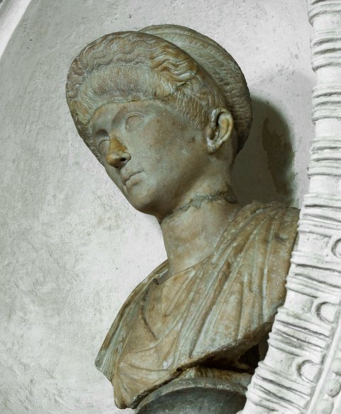 - NOTIZIE STORICO CRITICHE I tratti somatici ricordano quelli caratteristici dell'iconografia di Matidia (M. WAGNER, Archaologische Anzeiger, 1938, col. 2959), mentre l'acconciatura differisce nei particolari da quella che predomina nei ritratti di Matidia (cfr. H. STUART JONES, The Sculptures of the Museo Capitolino, Oxford 1912, p. 120, tav. 44; R. PARIBENI, Il ritratto nell'arte antica, Milano, s.a; tav. CCIX; Monumenti del Museo Torlonia, Roma, 1884, n. 542), pur essendo simile nella linea a quelle del II secolo d.C. (cfr. B.M. FELETTI MAJ, Il Museo Nazionale Romani, I ritratti, Roma 1953, nn. 176, 177, 183, 184)