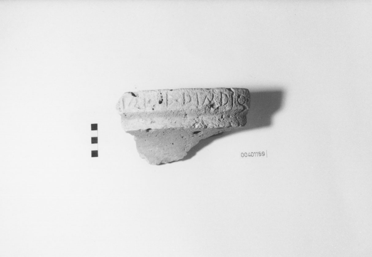 Frammento di base circolare, costituita da due elementi sovrapposti, con diametro diverso, ed una piccola parte di apofige