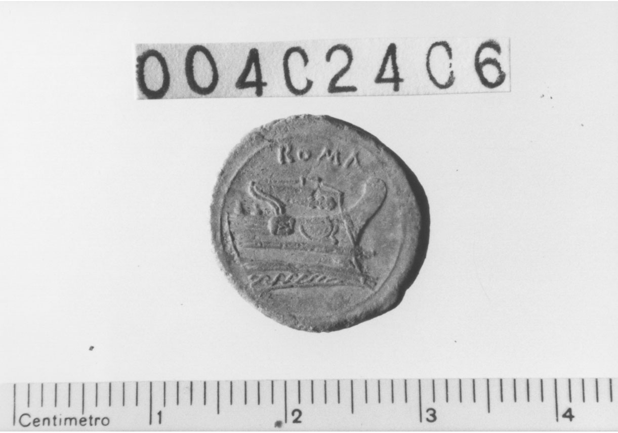 D/ Testa elmata di Roma a d. (elmo attico) R/ Prua di nave a d.; sopra, ROMA