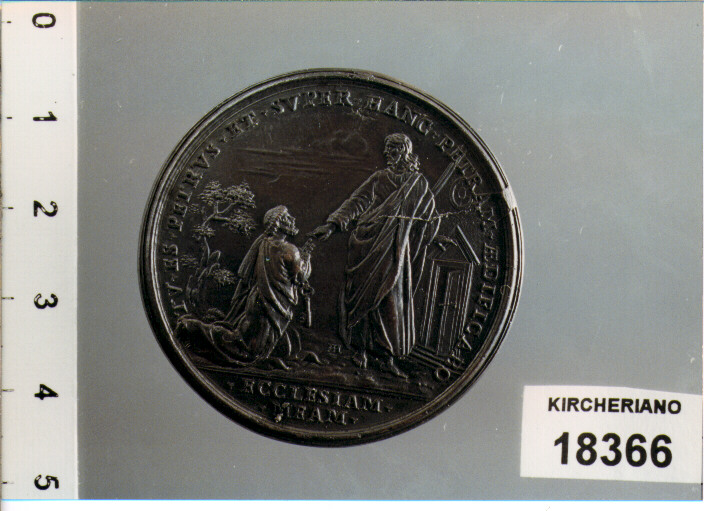 D/ CLEMENS X PONT MAX AN I, BUSTO A D. CON TRIREGNO; SOTTO ALB . HAMERAN . F; R/ TV ES PETRVS ET SVPER HANC PETRAM AEDIFICABO, NOSTRO SIGNORE DA' LE CHIAVI A S. PIETRO; IN ESERGO ECCLESIAM / MEAM