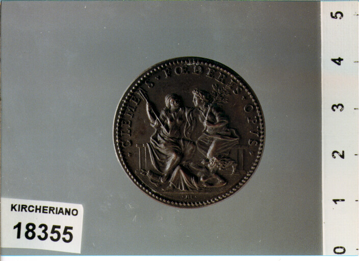 D/ CLEMENS IX PONT MAX A II, BUSTO A S. CON CAMAURO E MOZZETTA; NEL TAGLIO A . HAMERANO . F .; R/ CLEMENS FOEDERIS OPVS, LA PACE E LA CLEMENZA SEDUTE; IN ESERGO . AH