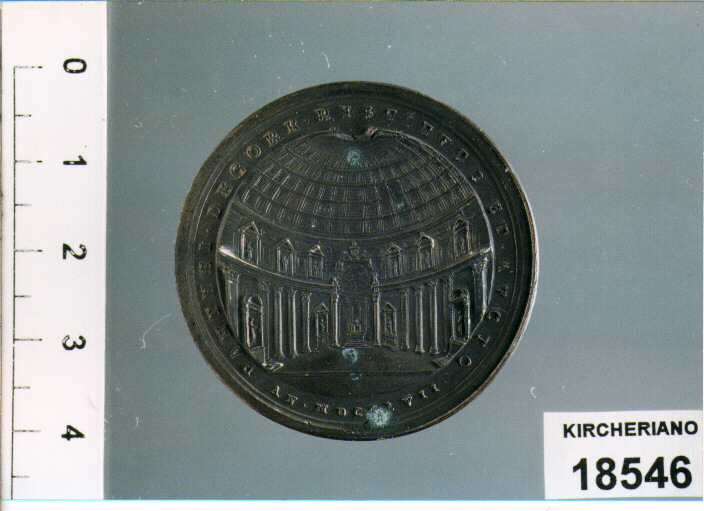 D/ BENED . XIV PONT . MAX . A . XVII, BUSTO A D. CON CAMAURO, MOZZETTA E STOLA; SOTTO O . HAMERANI .; R/ PANTHEI . DECORE . RESTITVTO ET AVCTO, INTERNO DEL PANTHEON; SOTTO AN . MDCCLVII
