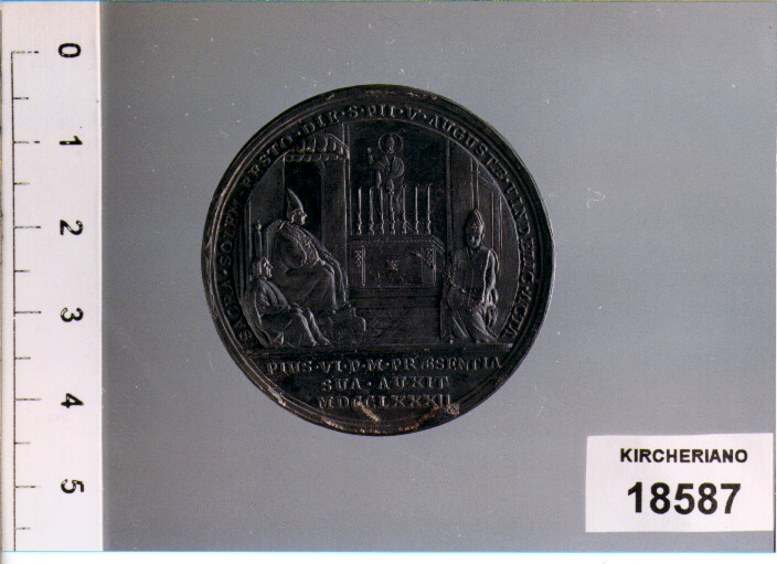D/ PIVS . SEXTVS . PONT . MAX . A . VIII .,BUSTO A D .;R/ SACRA . SOLEM .FESTO . DIE . S . PII . V . AVGVSTAE . VINDELIC . ACTA .,PONTEFICE IN CATTEDRA PRESSO L'ALTARE;IN ESERGO, PIUS . VI . P . M . PRAESENTIA/SUA . AUXIT/MDCCLXXXII