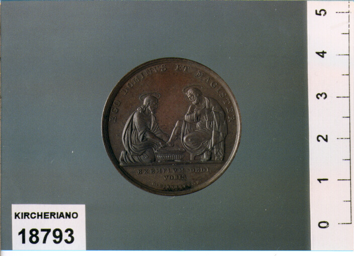 D/ PIVS IX . PONT . MAX . AN . XV ., BUSTO A S.; SOTTO B . ZACCAGNINI F.;R/ EGO DOMINVS ET MAGISTER, CRISTO LAVA I PIEDI A S. PIETRO; IN ESERGO EXEMPLVM DEDI / VOBIS; SOTTO G . GIROMETTO . F