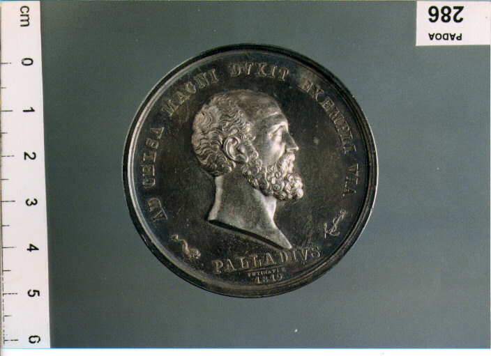 D/ I.R. ACADEMIA VENETA BON . ARTIVM ., TESTA A S.; SOTTO PUTINATI; TITIANVS / 1819; R/ AD CELSA MAGNI DVXIT EXEMPLI VIA, TESTA A D.; SOTTO PALLADIVS / PUTINATI F. / 1819