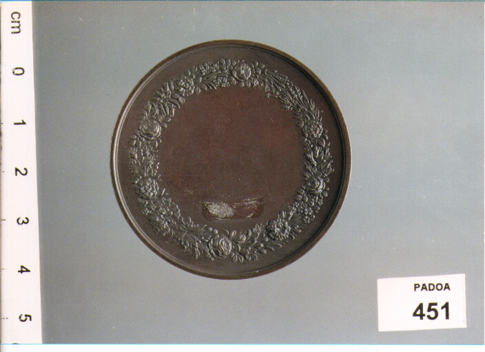 D/ SOCIETA' PROMOTRICE DEL GIARDINAGGIO, FIGURA FEMMINILE IN VOLO; IN ESERGO PADOVA/ MDCCCXLV; SOTTO A FABRIS D'UDINE FECE; R/ CORONA DI FIORI