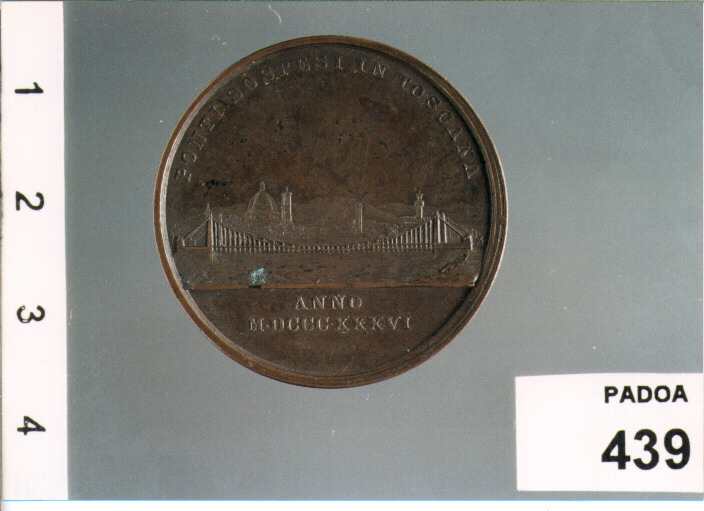 D/ LEOPOLDO II . G . D . DI TOSCANA, TESTA A D.; SOTTO A . FABRIS D'UDINEF.; R/ PONTI SOSPESI IN TOSCANA, VEDUTA DEL PONTE DI FERRO SULL'ARNO; IN ESERGO, ANNO / MDCCCXXXVI