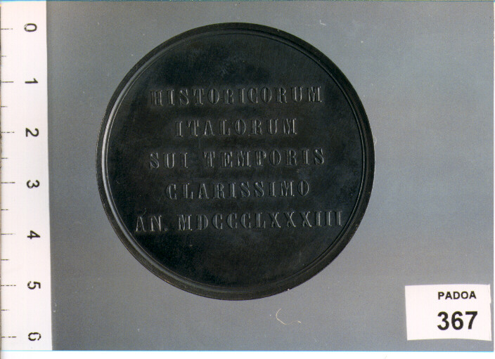 D/ CAESARI CANTU', TESTA A D.; SOTTO P. FUMEO MODELLO' / FRANC. BROGGI INCISE; R/ HISTORICORUM / ITALORUM / SUI TEMPORIS / CLARISSIMO / AN . MDCCCLXXXIII
