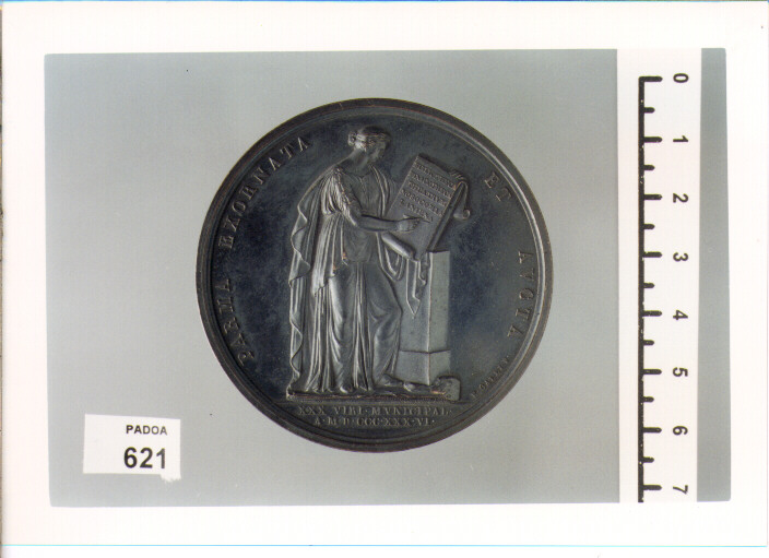 D/ M. LVDOVICA AVGVSTA, BUSTO A S.; SOTTO E . GALLI F.; R/ PARMA EXORNATAET AVCTA, FIGURA DELLA STORIA CHE SCRIVE SU UNA PERGAMENA, SOTTO E . GALLI F.; IN ESERGO XXX VIRI . MVNICIPAL . / A . MD . CCC .XXX . VI