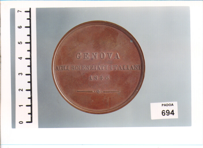 D/ CRISTOFORO COLOMBO, BUSTO A D.; SOTTO G . GIROMETTI . F .; R/ GENOVA /AGLI SCIENZIATI ITALIANI / 1846
