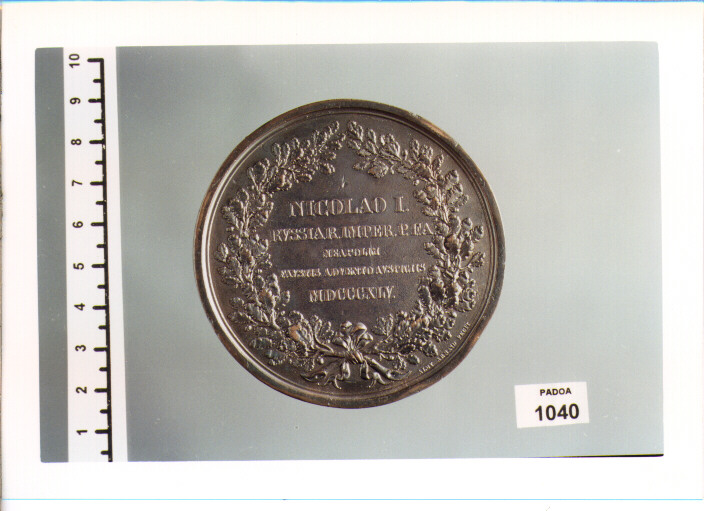 D/ FERDINANDVS II.D.G.REGNI VTR.SIC.ET HIER.REX D.CICCARELLI M P,BUSTO DITRE QUARTI A S.; SOTTO ALOY.ARNAVD SCVLPSIT.; R/ NICOLAO I./RVSSIAR.IMPER.P.F.A./NEAPOLIM/FAVSTIS ADVENTO AVSPICIIS/MDCCCXLV.,ENTRO CORONA DI QUERCIA;SOTTO ALOY ARNAUD FECIT
