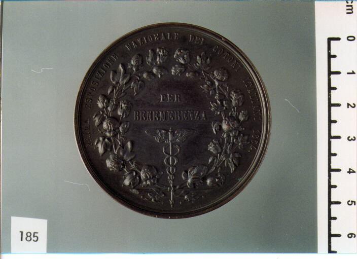 D/ VITTORIO EMANUELE II RE D'ITALIA, TESTA A S.; SOTTO G. FERRARIS; R/ PRIMA ESPOSIZIONE NAZIONALE DEI COTONI ITALIANI 1864; ENTRO CORONA DI FIORI PER/BENEMERENZA