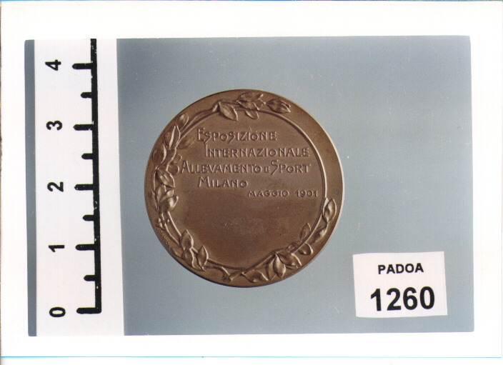 D/ FIGURA MASCHILE SUONA UNO STRUMENTO A FIATO; R/ ESPOSIZIONE/INTERNAZIONALE/ALLEVAMENTO E SPORT/MILANO/MAGGIO 1901, ENTRO CORONA DI ALLORO