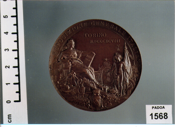 D/ 50.O ANNIVERSARIO DELLA PROCLAMAZIONE DELLO STATUTO, TRE TESTE ACCOLLATE A D. ; R/ ESPOSIZIONE GENERALE ITALIANA, L'ITALIA REGGE LO STATUTO; NELCAMPO, TORINO/ MDCCCXCVIII; SOTTO, JOHNSON- MILANO