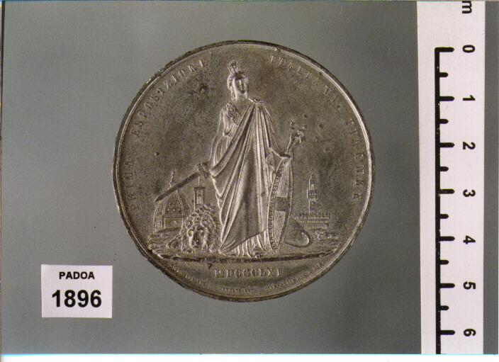 D/ TESTA A S. ; AI LATI, L' ITALIA DEGL' ITALIANI; NEL GIRO, STEMMI DELLEPRINCIPALI CITTA' ITALIANE; R/ PRIMA ESPOSIZIONE ITALIANA FIRENZE, L' ITALIA TURRITA STANTE; IN ESERGO, MDCCCLXI; SOTTO, NICCOLINI INV. FARNESI INC. MATARELLI DIS. E DIR