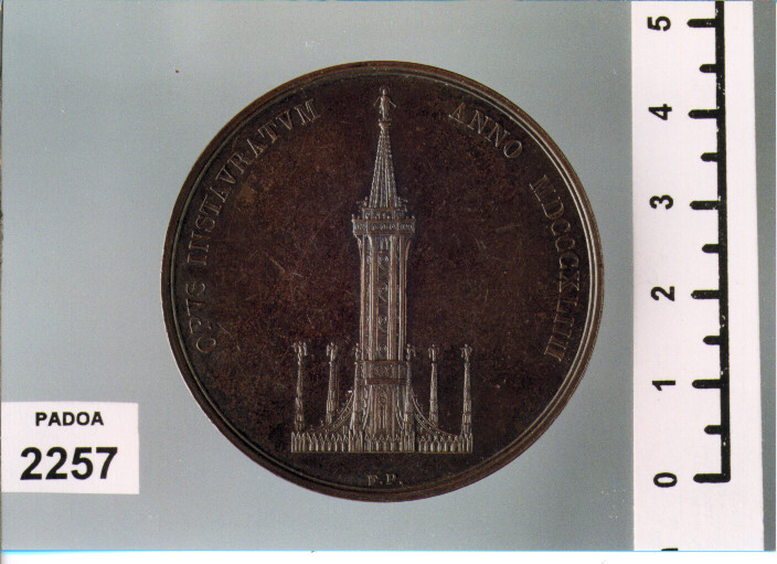 D/ AMBROSIVS DE NAVA COMES EQ. MELIT . A CONSILIIS ACCAD. MEDIOL. BONARVMARTIVM. , TESTA A S. ; SOTTO, F. P. F. ; R/ OPVS INSTAVRATVM ANNO MDCCCXLIIII, VEDUTA DEL CAMPANILE E DELLE GUGLIE DEL DUOMO; SOTTO, F. P