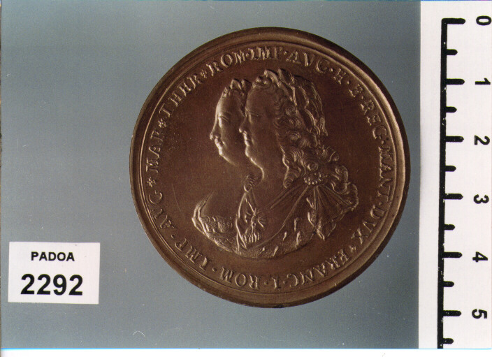 D/ MAR. THER. ROM. IMP. AVG. H. B. REG. MANT. DVX. FRANC. I. ROM. IMP. AVG, DUE BUSTI A S. ; R/ EDIFICIO; SOTTO, AD/ ANNONAE. PERPETVVM. VSVM/ ANN.MDCCLVI/ OPVS. MANTVAE. EXPLETVM; IN ESERGO, AVSTRIACAE. MVNIFIC/ DONVM