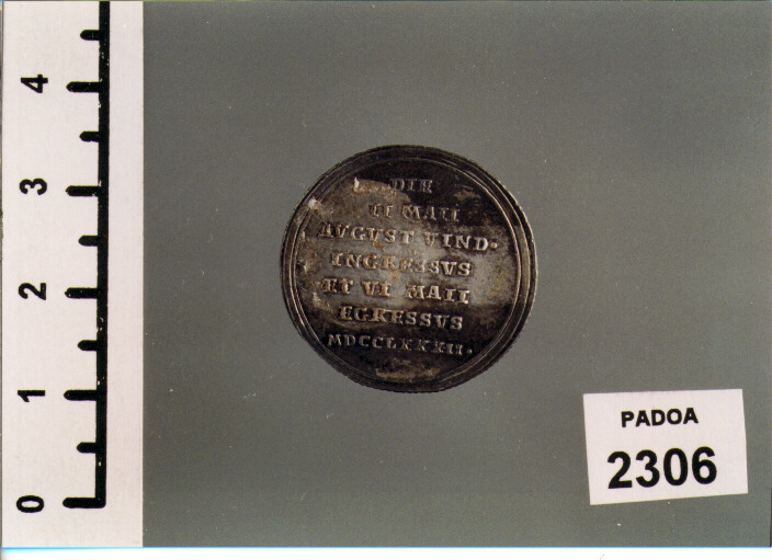 D/ PIVS VI PONT MAX, BUSTO A D. ; SOTTO, ROSA F. ; R/ DIE/ II MAII/ AVGVST VIND. / INGRESSVS/ ET VI MAII/ EGRESSVS/ MDCCLXXXII
