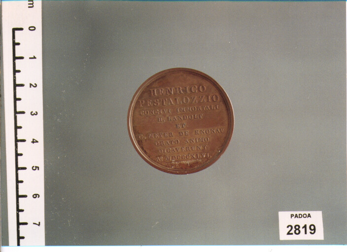 D/ BUSTO A D.; NEL TAGLIO, F. ABERLI FEC.; R/ HENRICO/ PESTALOZZIO/ CONCIVI IMMORTALI/ H. LANDOLT/ ET/ G. MEYER DE KNONAU/ GRATO ANIMO/ DICAVERUNT/A.O MDCCCXLVI