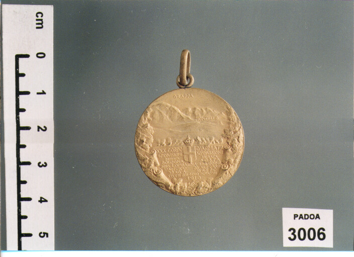 D/ XXX. ALLA RISCOSSA!!, SOLDATI ALL'ATTACCO; SOTTO, S. LONGO SJ; R/ VEDUTA DEL MONTE GRAPPA; SOTTO, XXX CORPO D'ARMATA/ 47.A DIVISIONE/ BRIGATA BOLOGNA/ 50.A DIVISIONE/ BRIGATA AOSTA/ BRIG. LOMBARDIA- BRIG. UDINE/ 57 ART. CAMP. 20 ART. CAMP. / ..