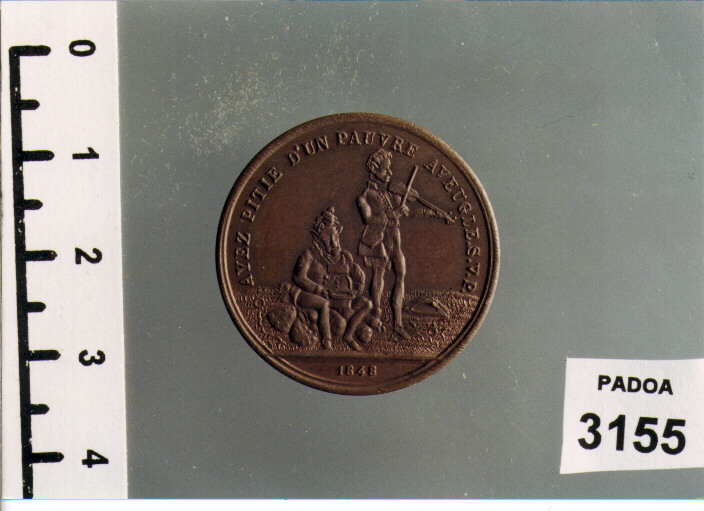 D/ AYEZ PITIE D'UN PAUVRE AVEUGLE. S. V. P., CAVAIGNAC CHIEDE L'ELEMOSINAACCANTO AD UN SUONATORE DI VIOLINO; IN ESERGO, 1848; R/ IL/ NE VOULUT/ JAMAIS/ QUE LE BIEN/ DE/ TOUS