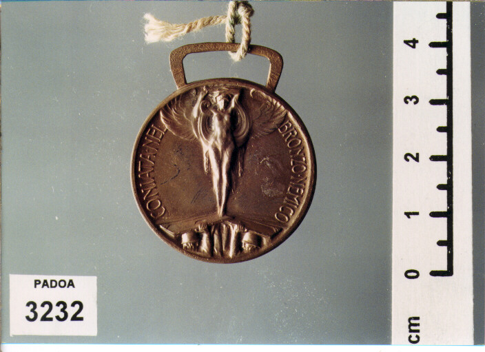 D/ GVERRA PER L'VNITA' D'ITALIA- 1915 1918, TESTA ELMATA A S.; DIETRO, S.CANEVARI; SOTTO, M. NELLI. INC.; R/ CONIATA. NEL BRONZO. NEMICO, FIGURA FEMMINILE ALLEGORICA SORRETTA DA SOLDATI