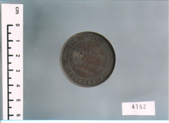 D/ IV. CENTENARIO ARIOSTEO, BUSTO A D.; SOTTO, 1875; R/ SOCIETA' BENVENUTO TISI FERRARA; NEL CAMPO, ALLE/ BELLE ARTI/ IL/ MUNICIPIO