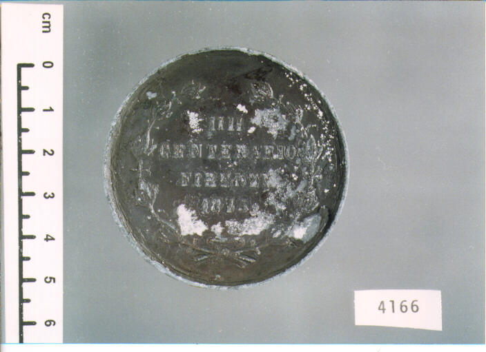 D/ MICHEL PIU' CHE MORTAL ANGEL DIVINO, TESTA A D.; R/ IIII/ CENTENARIO/ FIRENZE/ 1875, ENTRO CORONA DI FOGLIE