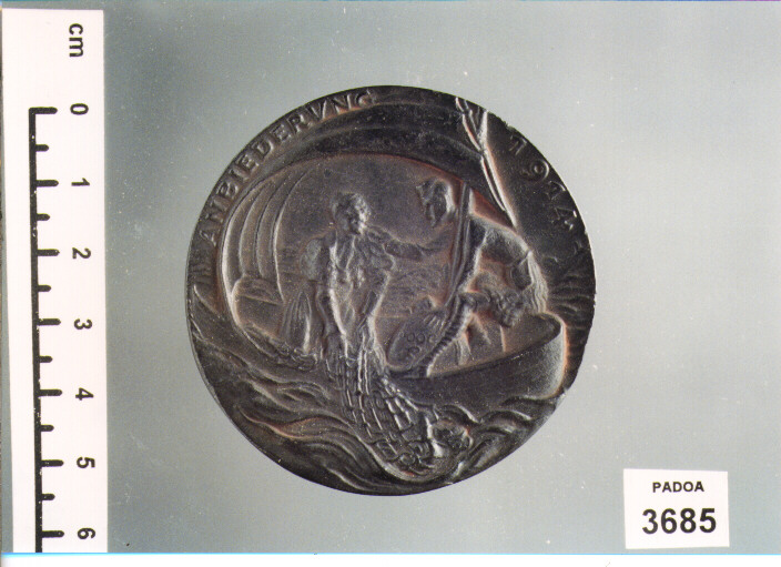 D/ MEIN. REICH. IST. NIT. VON. DIESER. WELT, IL PONTEFICE SEDUTO IN TRONO; R/ ANBIEDERVNG 1914, DUE FIGURE IN BARCA CHE PESCANO