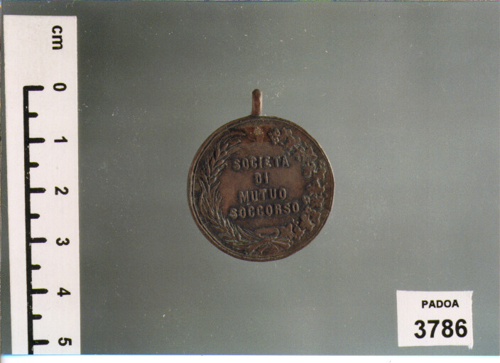 D/ DISCIOLTA GUARDIA NAZIONALE DI ROMA, AQUILA ENTRO CORONA DI QUERCIA E ALLORO; R/ SOCIETA'/ DI/ MUTUO/ SOCCORSO, ENTRO CORONA DI SPIGHE E FOGLIE