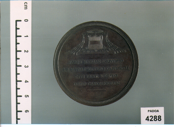 D/ ARCHIEPISCOPATV VTINENSI RESTITVTO ANNO MDCCCXLVII, PIO IX SEDUTO PORGE UNA PERGAMENA ALL'ARCIVESCOVO ASQUINI; R/ STEMMA CARDINALIZIO; SOTTO, FABIO MARIAE ASQVINIO/ S. R. E. PRAESBITERO CARDINALI/ CIVI BENE MERITO/ ORDO CANONICORVM