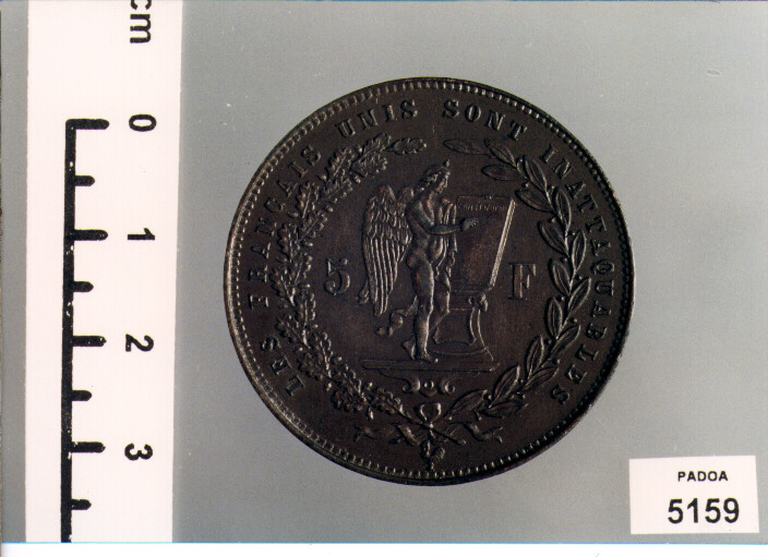 D/ REPUBLIQUE FRANCAISE, TESTA A S.; R/ LES FRANCAIS UNIS SONT INATTAQUABLES, GENIO ALATO A D. IN ATTO DI SCRIVERE; AI LATI, 5/ F