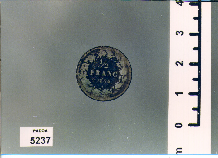 D/ LEOPOLD PREMIER ROI DES BELGES, TESTA LAUREATA A S.; NEL TAGLIO, BRA/ F.; R/ 1/2/ FRANC/ 1844, ENTRO CORONA DI QUERCIA
