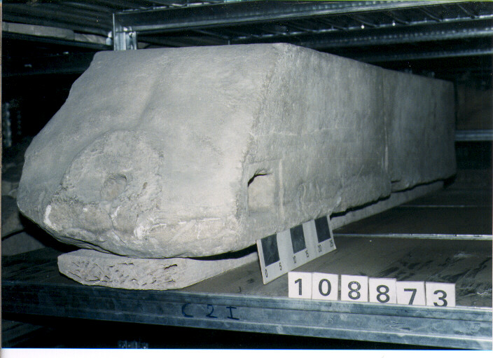 FORO PER INCASSO DELLA TESTA E INCAVI ALL'ALTEZZA DELLE SPALLE. ISCRIZIONE LATINA METRICA: CINQUE ESAMETRI E UN PENTAMETRO. RETRO SBOZZATO