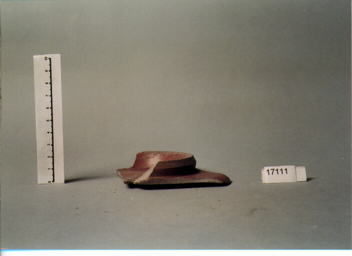 RESTI DI ORLO VERTICALE. FONDO PIANO CON SOLCATURE CIRCOLARI CONCENTRICHE, ALL'INTERNO, PIEDE AD ANELLO