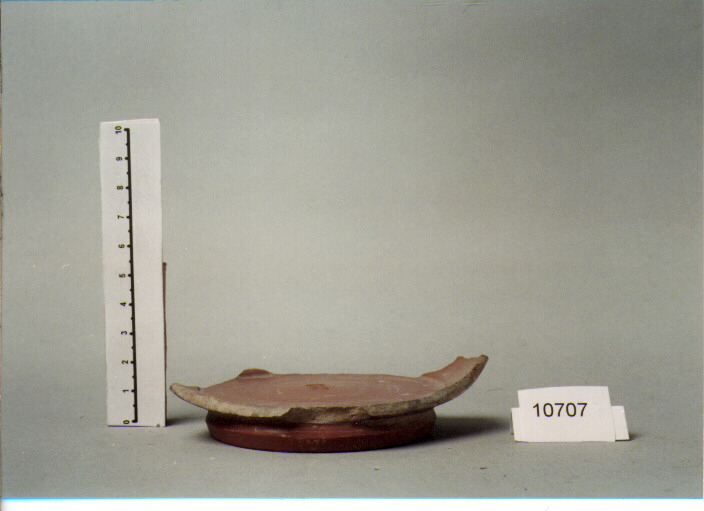 RESTI DI PARETE CONVESSA, GRADINO INTERNO TRA PARETE E FONDO, FONDO PIATTO CON CERCHI CONCENTRICI INCISI, PIEDE AD ANELLO
