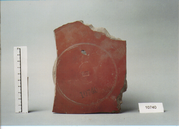 FONDO PIATTO CON CERCHI CONCENTRICI INCISI, PIEDE AD ANELLO
