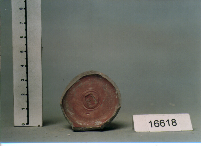 CORPO TRONCOCONICO, SPIGOLO DI CARENA VIVO, FONDO PIATTO CON CERCHIO INCISO ALL'INTERNO, PIEDE AD ANELLO