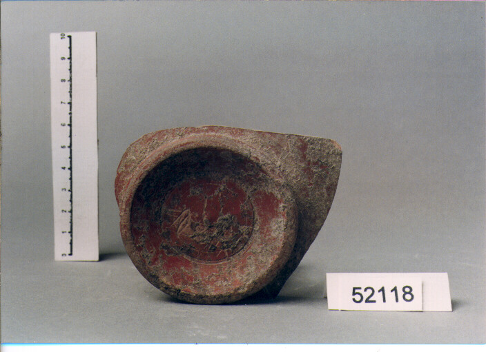 SUL FONDO INTERNO DELLA VASCA ANELLO IMPRESSO, PIEDE AD ANELLO CON PROFILO TRONCOCONICO. VERNICE LUCIDA