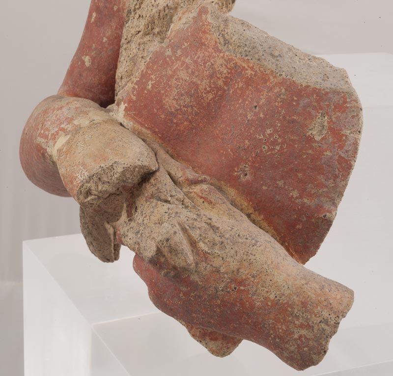 Busto privo della testa pertinente ad una figura di giovinetto con le braccia conserte. Il petto ha una muscolatura non sviluppata. La superficie posteriore non è modellata