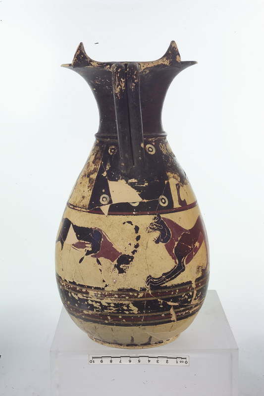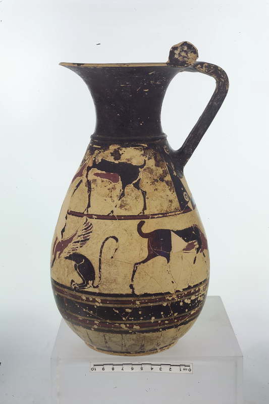 olpe con fregi di animali. Attribuibuibile alla fase finale del Protocorinzio Finale- inizi del Transizionale, si data tra il 640-630 a.C