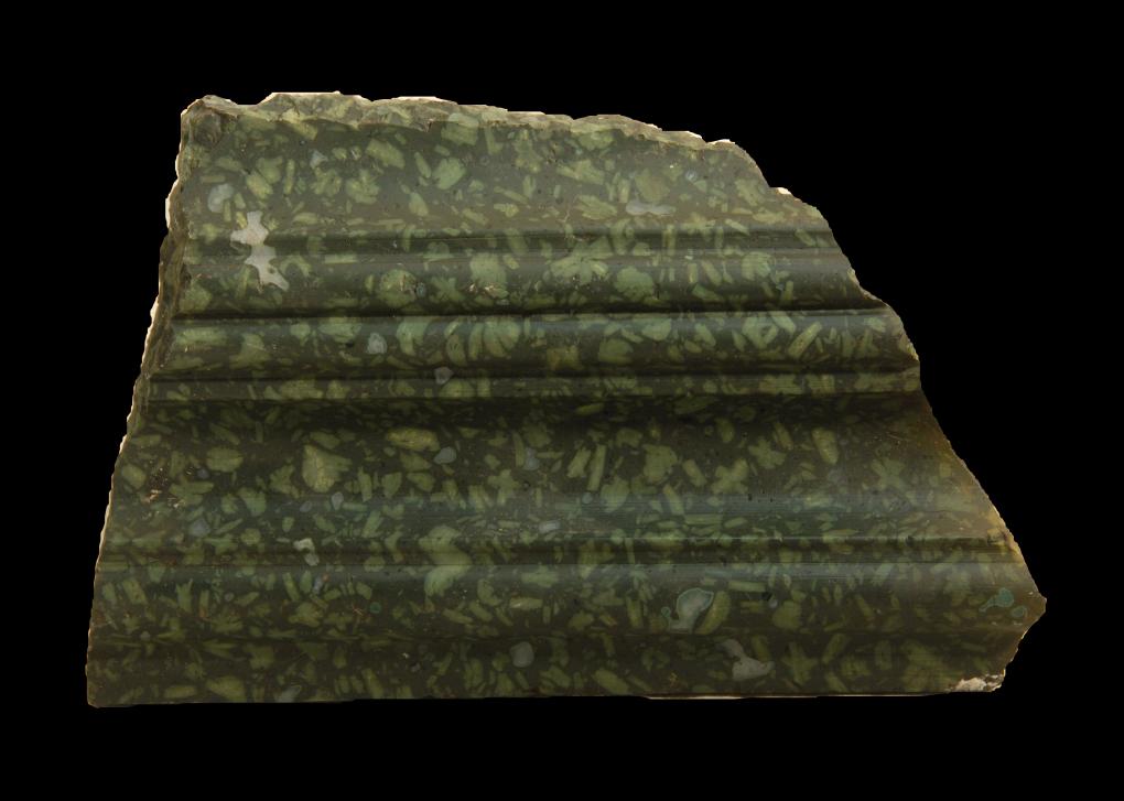 elementi architettonici e di rivestimento, elementi architettonici, fusto scanalato con tondini di lesena . Il frammento ha il fianco destro, e i lati inferiore e superiore fratturati. Il fianco sinistro è liscio e ha il foro per il perno di fissaggio. Il retro è liscio con un listello sporgente leggermente sbozzato lungo il bordo sinistro